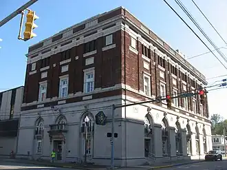 The Masonic Temple is a historic Masonic Lodge building located at Parkersburg, Wood County, West Virginia. It was built in 1915, and is a three-story, three-bay wide, red brick building with stone trim in the Classical Revival style. It features elliptical bays flanking the central bay on the front facade.[2] The building was designed by Columbus architect Frank Packard with local supervising architect Theodore T. Sansbury.
