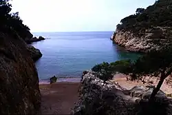 The Ardenya Massif is a quite compact mountainous terrain, granitic between the craggy portion near the sea and the forested plains to the west, the highest point of which is Puig de Cadiretes (519 metres). The mountain ranges run broadly in a north-east / south-west direction and consist mostly of granite rock.[2]