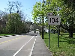 Route 104 is a 12.54-mile-long (20.18 km) west–east highway in southeastern Massachusetts. Its western terminus is at U.S. Route 44 (US 44) in Taunton and its eastern terminus is at Route 106 in East Bridgewater.