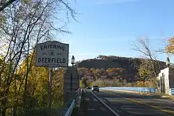 In Sunderland, Route 116 passes west of the Green Swamp and Bull Hill before crossing Route 47 again in the town center before crossing the Connecticut River a third time, over the Sunderland Bridge into Deerfield. The route then meets U.S. Route 5 and Route 10 just over the Whately town line, and just north of I-91 Exit 24. It then follows Routes 5 & 10 for about a mile before leaving the route, heading westward and crossing I-91 at Exit 25. The route heads northwestward, passing through the Mill River area of town and passing into Conway.