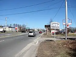| Randolph | 4.5 | 7.2 | Western end of Route 28 concurrency | ||