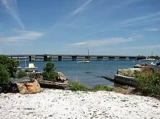 Route 88 begins at the northern end of the Horseneck Beach State Reservation lands, on a peninsula dividing the East Branch of the Westport River from Buzzards Bay. After just 0.3 miles (0.48 km), it crosses the Normand Edward Fontaine Bridge over that river into the Westport Point section of town. The road has five at-grade intersections with stoplights and two ramped overpass intersections.