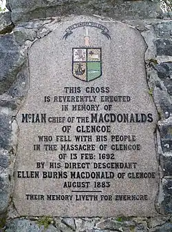 - ^ "The Massacre of Glencoe. A Memorial Cross". East Aberdeenshire Observer. 6 November 1883. Retrieved 19 October 2019.