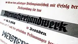 Master craftsman certificate – Handwerkskammer Dresden – July 7, 1958