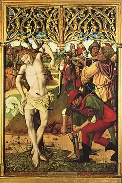 The Master of the Saint Augustine Altarpiece (sometimes called the Master of the Augustinians' Altarpiece; German: Meister des Augustiner-Altars) was a German painter active in Nuremberg during the second half of the 15th century. His work indicates familiarity with the work of both Martin Schöngauer and the Master of the Housebook.