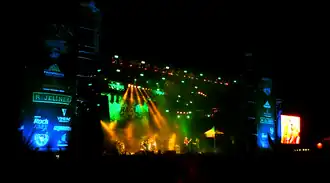Masters of Rock is a metal festival in Vizovice, Czech Republic. The main styles represented at this festival are power metal, speed metal, and heavy metal.[1] In the past, the festival has featured bands such as Judas Priest, Motörhead, Slayer, Helloween, Uriah Heep, Manowar, Dream Theater, Nightwish, Accept, Anthrax, Sweet, Twisted Sister, Europe, HammerFall, Stratovarius, Gamma Ray, Rhapsody of Fire, Sabaton, Kreator, Edguy, Rage - also with symphonic orchestra, Tarja Turunen, Apocalyptica, Within Temptation, Children of Bodom, Avantasia, Sebastian Bach, Behemoth, Amon Amarth, and many more. The 2005 attendance was over 20,000, the 2006 one over 25,000 and finally the 2007 was over 30,000. The festival is held every summer and the Winter morphosis takes place in November in the town of Zlín. Since 2010 the main stage of summer festival is named after Ronnie James Dio, who died earlier that year.