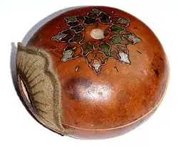The matófono or galleta is a traditional mirliton-type musical instrument from Argentina and Uruguay. It consists of a gourd used for mate, split into two halves and held together with thread[1] or a piece of leather attached as a mouthpiece.