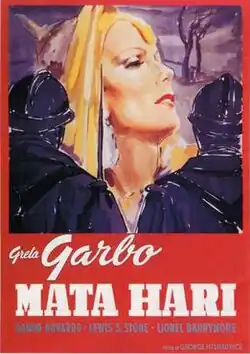 Mata Hari is a 1931 American pre-Code drama film directed by George Fitzmaurice loosely based on the life of Mata Hari, an exotic dancer and courtesan executed for espionage during World War I. The Metro-Goldwyn-Mayer film stars Greta Garbo in the title role. It was Garbo's most commercially successful vehicle. Only a censored version of the film is currently available.