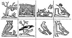His book on bird hunting published in 1585 and included 150 species with 79 woodcuts of birds. Some of the woodcuts are thought to have been drawn from mounted specimens, indicating the taxidermy techniques of the period.[2][3] About 130 have been identifiable to species as defined in modern scientific literature. Cyganski used the term "bird peoples" to refer to species and some of the descriptions are in the form of verse.