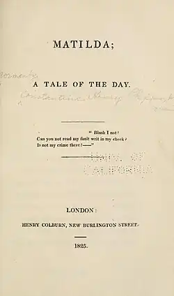 Matilda is an 1825 novel by the British writer and politician Lord Normanby, originally published in two volumes.[1] It was part of the emerging, popular genre of silver fork novels that focused on the fashionable British upper classes in the later Regency era, and was his first published work. He followed it with a second silver fork novel, the political Yes and No in 1828.