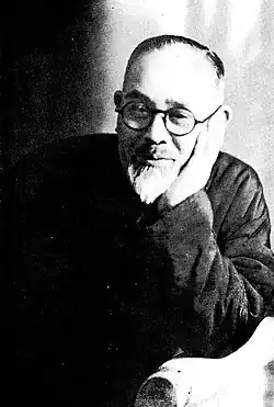 After graduating from primary school, he attended evening classes while helping his parents, and at sixteen he organized a "Patriotic Volunteer Group" (Giyūdan) to demand more autonomy for the village youth group from the village elders.[11] He later moved to Kyoto and then Tokyo to continue his education but left school after a fight with a student who insulted him.[12]