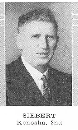 Siebert was a member of the Assembly twice. First, from 1935 to 1936 and second, from 1939 to 1946. He was also an unsuccessful candidate for the Assembly in 1948. Additionally, Siebert was Chairman of Salem, Kenosha County, Wisconsin, and a member of the Kenosha County, Wisconsin Board. Originally a Democrat, he later became a Republican.