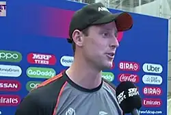 In May 2018, he was one of twenty players to be awarded a new contract for the 2018–19 season by New Zealand Cricket.[24] In April 2019, he was named in New Zealand's squad for the 2019 Cricket World Cup.[25][26] On 3 July 2019, in the match against England, Henry played in his 50th ODI.[27] In the first semi-final, New Zealand beat India by 18 runs, with Henry taking three wickets for 37, and being named the player of the match.[28][29]