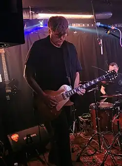 Matt Stevens is an English rock guitarist and composer, co-founder of the band The Fierce and the Dead,[2] and solo artist who has made 4 instrumental albums up to 2014's Lucid, released on Esoteric Recordings via Cherry Red Records.[3] Prog Magazine included him in their 100 Prog Icons[4] and their 200 Greatest Prog Musicians.[5] Since 2022 he has been the guitarist in Tim Bowness's live band.[6] He has also recorded and written with Judy Dyble for an album on Acid Jazz Records which featured in the UK Official Independent Album Breakers and Progressive Albums Charts.[7][8] His solo music has been played on BBC 6 Music[9] and he was nominated for Breakthrough Artist at the 2014 Progressive Music Awards for his solo work.[10]