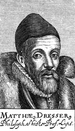 Matthäus Dresser, (also: Matteaus, Matthaei; Dressler, Drescher, Dresserus, Dresseri) (24 August 1536 in Erfurt – 5 October 1607 in Leipzig)[1] was a Lutheran German humanist, pedagogue, philosopher, and historian.