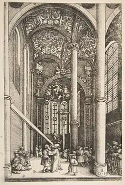 ![]() Daniel Hopfer's "the Parable of the Mote and the Beam" (c. 1530). Interior of the Church of Saint Katherine's. | |