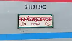 Mau–Anand Vihar Terminal Express, is an Indian Railways train of North Eastern Railway Zone Varanasi Division. It was introduced in 2013's Railway Budget and hence initiated its journey from November 2013. It operates bi-weekly and covers a distance of 833 kilometres (518 mi) from Mau Junction to Anand Vihar Terminal. Mau Express consists of 23 coaches which includes one AC-II coach, four AC-III coaches, seven sleeper class coaches, nine general (unreserved) coaches and two SLR coaches.[1][2][3]