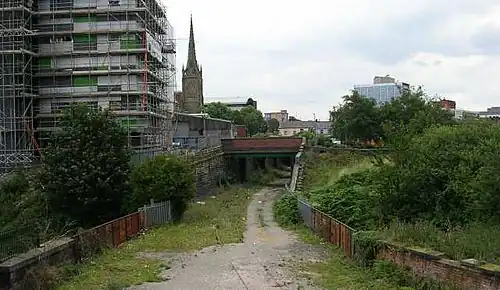 Maudland Bridge railway station was once the Preston terminus of the Longridge Branch Line, in Lancashire, England. It was located on Maudland Road, between a bridge over the Lancaster Canal and Cold Bath Street. The Maudlands district of Preston gets its name from the medieval St. Mary Magdalen's leper hospital, which once stood near the present-day St Walburge's Church.[2]