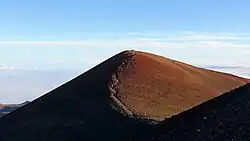 Since the mountain is considered sacred to the Native Hawaiians, a sign is posted asking visitors to not access the summit cinder cone, which is named Puʻu Wekiu.[1] The sign reads: