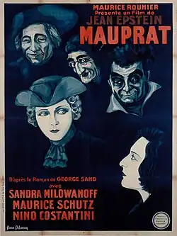 Mauprat is a 1926 French silent drama film directed by Jean Epstein, based on the eponymous novel by George Sand. Luis Buñuel, who had enrolled in Epstein's acting school, was the production assistant and had a small acting role in the film.[1]