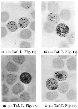 Georg Maurer first described the structures now known as Maurer's clefts in 1902, when he described methylene blue-stained spots in red blood cells containing older P. falciparum parasites.[2] He proposed that these spots were due to injury of the host cell and consumption of host cell materials by the parasite.[1] A more detailed description of Maurer's clefts using electron microscopy was published by William Trager, Maria Rudzinska, and Phyllis Bradbury in 1966.[4]
