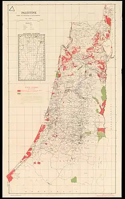 Abu-Sitta, Salman H. (2010). Atlas of Palestine 1917–1966 (PDF). Palestine Land Society. p. 54.: 375,000–550,000 ha. - ^ A Survey of Palestine: Prepared in December 1945 and January 1946 for the Information of the Anglo-American Committee of Inquiry, Volume 1 (PDF). p. 257.. Cf. also p. 256: "It is frequently difficult to assume that there was in the past no grant, and consequently it is not safe to assume that all the empty lands south of Beersheba or east of Hebron, for instance, are mewat."