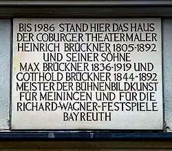 In 1870, with his younger brother Gotthold Brückner (1844–1892), he founded the Brückner Brothers Studio for Scenic Stage Design, in Coburg.[1] They created stage sets at theatres across Germany for 40 years, most significantly at Richard Wagner's Bayreuth Festival, including the original 1876 production of Der Ring des Nibelungen.[1]