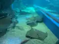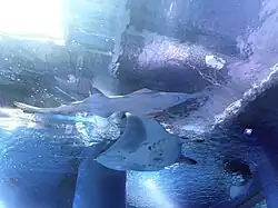 A dome-shaped tunnel fishtank with a total length of 20 m (66 ft) named "Wonder Tube" is installed in the facility. In Wonder Tube, about 15 species of rays of various sizes, including manta rays, are kept.[23] This aquarium has the only facilities in the world where dwarf sawfish are kept. There are events such as an experience corner where you can feed krill to manta rays.[20][24]