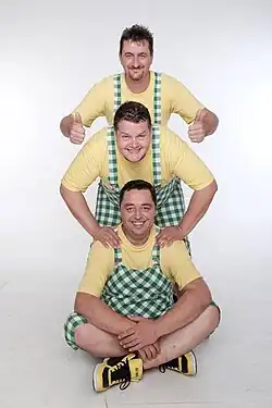 Maxim Turbulenc is a Czech pop group from Prague, established in 1994 by Pavel "Kyklop" Vohnout, Daniel "Dan" Vali (died 2024),[1][2] and Petr "Pancha" Panocha. They mostly produce music for children, humorous songs, and dance remixes of old folk hits.[3][4] In November 2005, Panocha left the group and was replaced by Petr "Ajfel" Novák. In 2015, Tomáš "Timi" Báča took the place of Vohnout. Panocha and Vohnout, together with Přemysl Stoklasa, later formed the group Maxíci,[5] which was joined by Oskar Palecek Kowalski in 2024.[6]