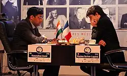 Maxime Vachier-Lagrave (French pronunciation: [maksim vaʃje laɡʁav]; born 21 October 1990), often referred to by his initials, MVL, is a French chess grandmaster who is a former World Blitz Champion.[1] With a peak rating of 2819, he is the seventh-highest rated player in history.
