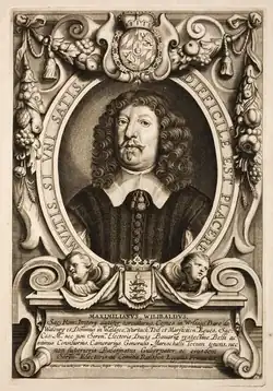 At the end of the Thirty Years' War Swedish troops under general Wrangel laid fire to Maximilian Willibald's home Schloss Wolfegg in 1646. As he lacked the funds for an immediate repair, he moved to Amberg, where he accepted the job as a governor of Upper Palatinate.[1][2]