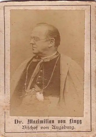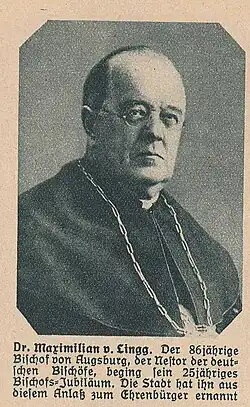 Maximilian von Lingg, from 1902 Ritter von Lingg (8 March 1842 in Nesselwang – 31 May 1930 in Füssen), was the 78th Bishop of Augsburg.