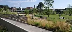 There is a large children's playground with six slides and references to the industrial past of the site, as well as landscaped areas with thousands of plants and 142 trees spread across 58 species.[9][10]