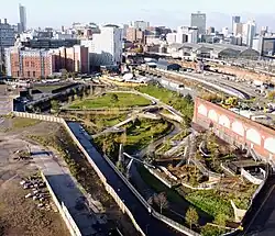 Mayfield Park is a park in Manchester city centre, England, covering an area of 6.5 acres (2.6 ha). The city centre's first new park in more than 100 years, it was officially opened on 22 September 2022 by Bev Craig, the Leader of Manchester City Council.[1][2]