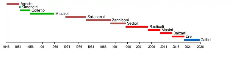 | 12 | Gian Luca Zattini | 11 June 2019 | Incumbent | Independent (centre-right) |
