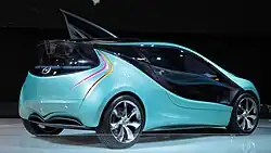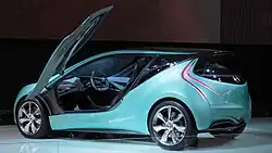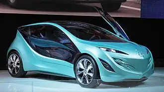 The Mazda Kiyora was a concept car made by Mazda. It was first introduced at the 2008 Paris Motor Show. It was the planned next generation urban compact car intended to replace the Mazda2, although it never entered production.[1] It was a design study for next-generation compact car and also an engineering study of high fuel efficiency gasoline engine. The design theme of the Mazda Kiyora was water. It was applied to a city, a new trend in the automotive market due to environmental concerns. The Mazda Kiyora achieved 32 km/L of fuel efficiency and 90g/km of CO2 emission.