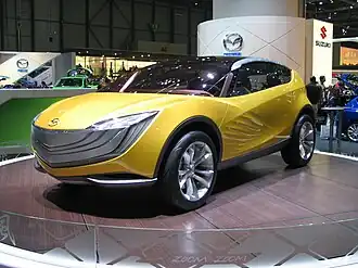 The Mazda Kazamai is the sixth Nagare car. Taking the form of a compact crossover designed for the Russian market,[11] it is powered by a 2.0-litre engine with direct injection to increase both performance and fuel economy and decrease emissions. The name Kazamai (風舞; wind's dance; swirling wind) serves as its motif,[12] with aerodynamic styling inspired by crosswinds, large 22-inch wheels, and the use of aluminium to reduce weight.[11]