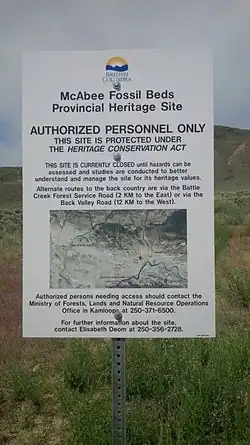 - ^ "McAbee Fossil Beds Heritage Site". Province of British Columbia.