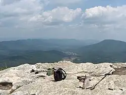 The hike is moderately difficult with a gradual incline.[8] McAfee Knob hiking trail ends on rocky mountain terrain that sticks out like a diving platform into the air.[7] The trail offers a 270-degree panorama view of the Catawba Valley. North Mountain is also viewable to the west, the Tinker Cliffs to the north and the Roanoke Valley to the east. The hike is a climb of around 1,700 feet (520 m) and about 4.7 miles (7.6 km) to the top of the Knob from the VA-311 parking area.[9]