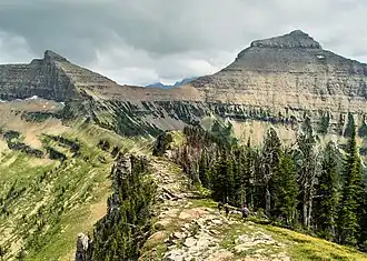 Like other mountains in Glacier National Park, the mountain is composed of sedimentary rock laid down during the Precambrian to Jurassic periods. Formed in shallow seas, this sedimentary rock was initially uplifted beginning 170 million years ago when the Lewis Overthrust fault pushed an enormous slab of precambrian rocks 3 mi (4.8 km) thick, 50 miles (80 km) wide and 160 miles (260 km) long over younger rock of the cretaceous period.[4]
