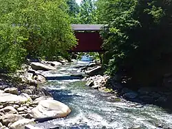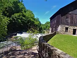 McConnells Mill with the gristmill and Slippery Rock Creek in the background.View of the covered bridge in McConnells Mill State Park from a walkway near the mill itself.McConnells Mills Covered Bridge during the summer.