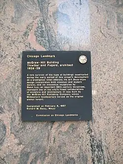 1. ^ "McGraw–Hill Building". City of Chicago Department of Planning and Development, Landmarks Division. 2003. Archived from the original on April 10, 2007. Retrieved May 7, 2007.