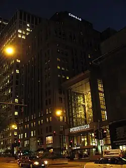 The McGraw–Hill Building was a 16-story, 190-foot-tall (58 m) landmark building in the Near North Side community area of Chicago, Illinois, at 520 N. Michigan Avenue. The facade and its architectural sculpture by Chicago-born artist Gwen Lux were designated a Chicago Landmark on February 7, 1997.[1] The building was demolished in 1998;[2] however, its facade was saved and reinstalled in 2000 on the new Le Méridien Chicago hotel building.[3] The hotel was renamed the Conrad Chicago in 2005.[4] The hotel was again renamed in 2015, becoming The Gwen, for sculptor Gwen Lux,[5] and is part of The Luxury Collection.[6] It was constructed by the McGraw-Hill Publishing Company, whose Midwestern headquarters served as the original anchor tenant.[7]