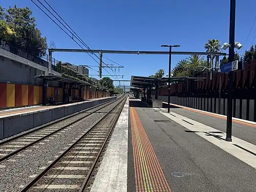 ![]() Southbound view from Platform 2, December 2024 | ||||||||||||||||||||||||||||||||||||||||||||||||||||||||||||||||||||||