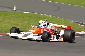 In 1980 Tiga rebuilt an M26 as a full ground effects car and it was re-engined with a five-litre Chevrolet engine and raced as a Formula 5000.[3] Alfredo Costanzo used this car to win the 1981 Australian Drivers' Championship.