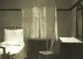 A business office came with a switch board containing two outside lines independent of the hospital. The telephone operator also manipulates the buzzers in every room. Electric light switches controlling the lighting of halls and stairs is controlled from this office as a fire protection.[5]