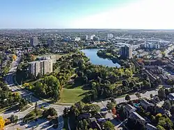 Meadowvale is a large suburban district located in the northwestern part of Mississauga, Ontario, Canada, just west of Toronto. In the 19th and early 20th centuries, Meadowvale Village in Toronto Township was established nearby and named for the meadows along the Credit River.[1] In the 1970s the area to the west of the village (actually a hamlet) was selected to be the site of a "new town" for the newly (1974) incorporated City of Mississauga and took the Meadowvale name, while "Village" was added to the historic community.[1] This newer section comprises the bulk of the district today. Meadowvale borders the neighbourhoods of Lisgar to the west, Streetsville and Erin Mills to the south, Churchill Meadows to the southwest, and the City of Brampton to the north.