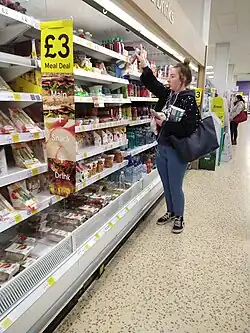 Meal deals are sold by a variety of retailers such as supermarkets, convenience stores, cafés and bakery chains. Many retailers offer a selection of types of mains, such as pasta salads, sushi and wraps which tend to come in a variety of toppings or fillings, as well as ready-made sandwiches. Supermarkets generally offer the widest variety of meal deals,[1] with Sainsbury's offering over 500 products in their range,[4] and Tesco offering over 10 million possible combinations.[5] They tend to be served cold in supermarkets, but some cafés such as Costa offer hot options.[6] Snacks offered by many retailers also include sausage rolls,[7] pork pies[8] and fresh fruit.[9]