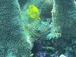 | Threespot damselfish (Stegastes planifrons) among Dendrogyra cylindrus corals | |