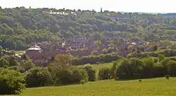 Early photographs show the Model Farm, which occupied the hillside, with fields in which rhubarb was grown.[16] The area also hosted Sugarwell Hill Mill which had a distinctive round chimney.[17]